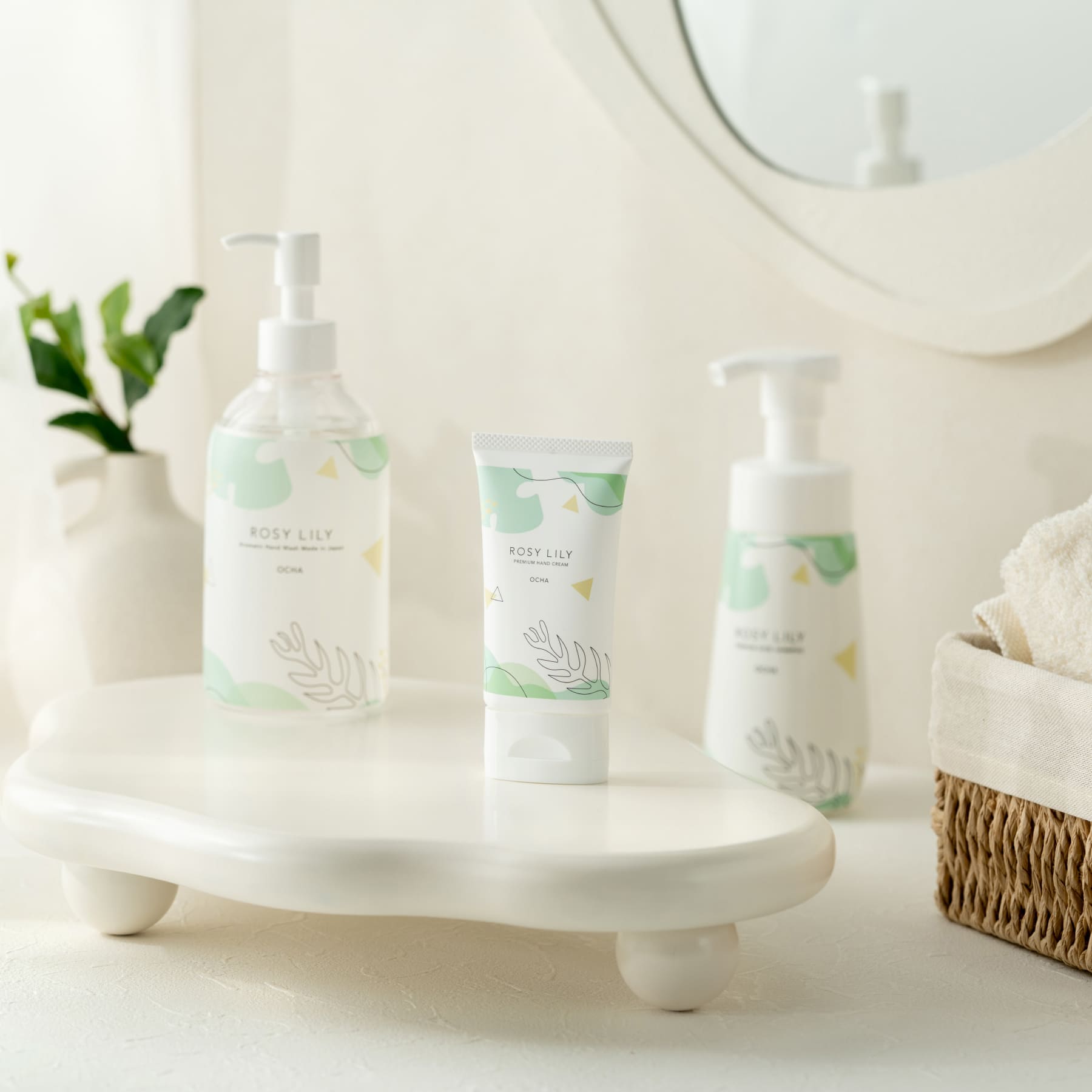 洗うときも、潤すときも。同じOCHAの香りが続くから、手肌に心地よい一貫性を感じられます。